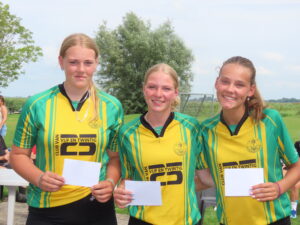 Op de foto met de keurmeesterstok Dido Iedema, Sophie Kroondijk en Noëlle Hiddinga. De foto is gemaakt door Lijkle Spijksma