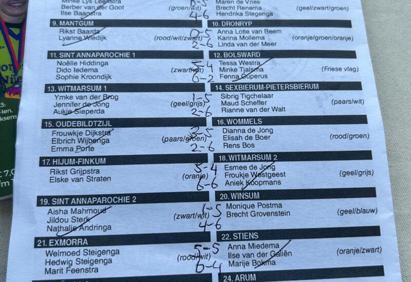Het partuur van Sint Annaparochie (Aisha Mahmoud, Sophie Kroondijk en Noëlle Hiddinga) hebben op overtuigende wijze de Ald-Meierspartij in Hitzum gewonnen. In de finale tegen Stiens werd het 5-1 en 6-2. Stiens (Idwer Vis, Ilse van der Galiën en Anna Miedema) was misschien ook wel een beetje uitgekaatst na een lange slijtageslag in de halve […]